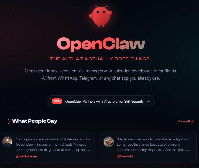 OpenClaw官网截图