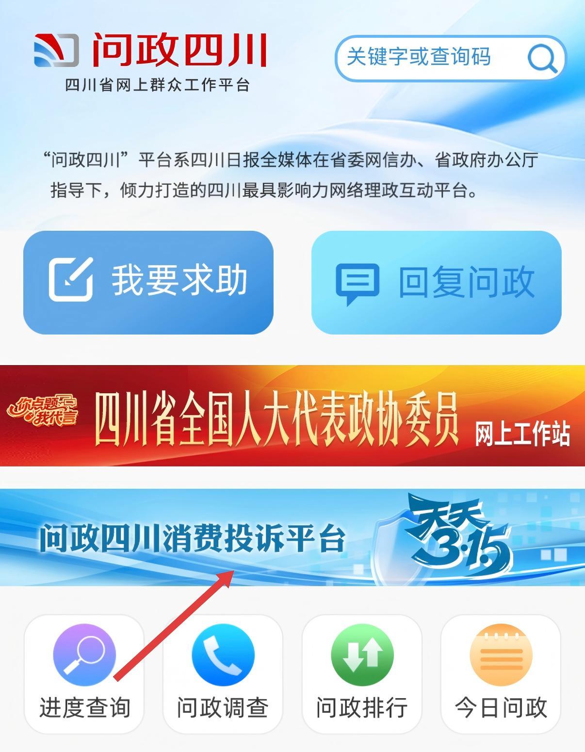 ①打开微信搜索“问政四川”小程序,点击“问政四川·天天315——消费投诉平台”即可参与留言。