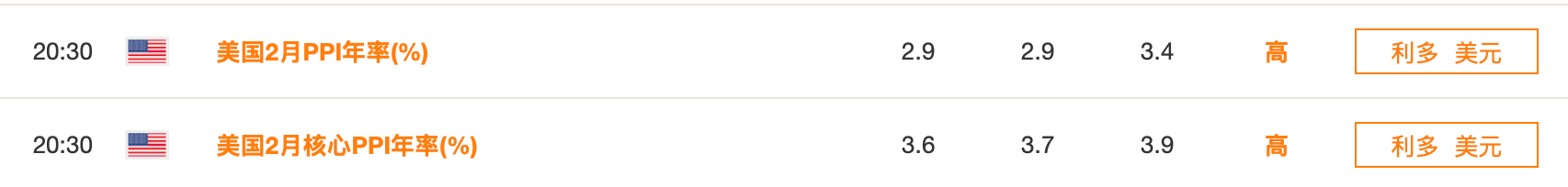隔夜公布的美国2月PPI数据显著超预期:环比上涨0.7%,为七个月最大涨幅;其中商品价格上涨1.1%,创2023年8月以来新高;核心PPI上涨0.5%,同样高于市场预期。同比来看,整体PPI已升至3.4%,达到一年高位。通胀压力的再度抬头,直接打击了市场对降息的乐观预期。