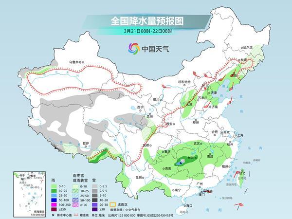 明天,新疆南疆盆地和南疆西部山区、西藏南部和东部、青海南部和西部、甘肃河西和西南部、川西高原北部、黑龙江东南部、吉林东部等地部分地区有小到中雪或雨夹雪,其中,西藏西南部等地部分地区有大到暴雪。西藏东南部、贵州东部、湖南中西部等地部分地区有中到大雨,局地有暴雨。