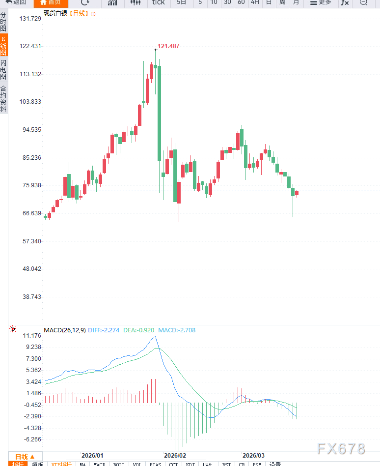 白银价格的反弹主要受美元回调与避险需求推动,但中期逻辑仍受到高利率环境制约。在全球央行维持紧缩立场背景下,白银难以形成持续上涨趋势。未来走势将取决于美元方向、利率预期以及地缘风险变化,整体预计维持震荡偏弱格局。汇通财经APP讯——白银市场在经历此前大幅下跌后出现技术性反弹,当前价格回升至74美元附近运行。此次反弹的主要驱动来自美元指数的明显回落以及市场避险情绪的阶段性升温。从宏观环境来看,美元指数在前一交易日一度跌至99附近,跌幅超过1%,使得以美元计价的贵金属吸引力上升,推动白银获得买盘支撑。尽管随后美元略有反弹,但整体仍处于短期调整阶段。