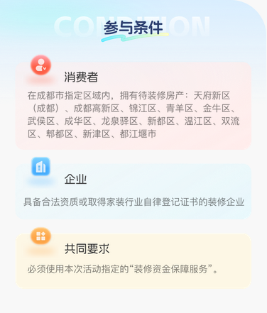 3月20日,天府市民云频道上线“成都装修资金保障服务补贴”申请通道,消费者和企业可依据补贴要求一键报名。