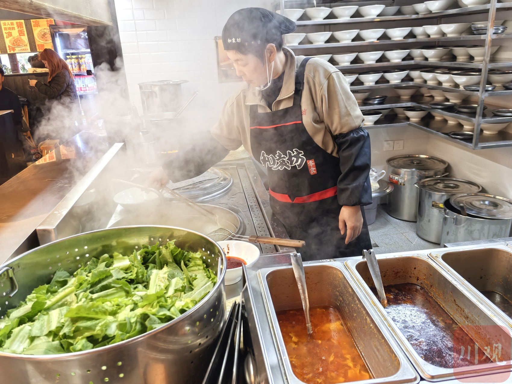 朱锋说,他们正在推进以中央厨房的形式,让“大颗、鲜嫩多汁”的肉丁臊子和复合调料始终保持高标准和高质量,“让每根面条都能吸饱汤汁”。