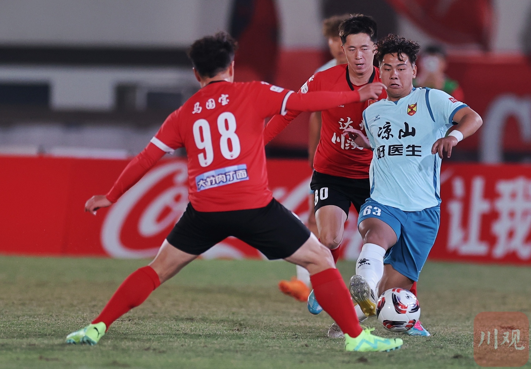 达州川汉子队队服背面印着广告“大竹肉丁面”。川观新闻记者 华小锋 摄
