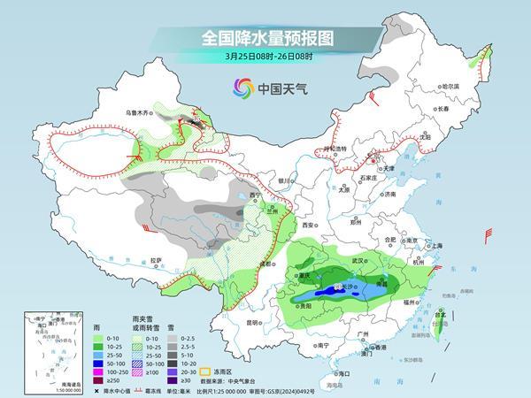 3月24日至26日,南方多地阴雨天气持续,而且月底还将有一轮较强降雨过程,需防范连续降雨对交通、农业等方面的不利影响。阴雨影响下,西南到江南等地升温乏力,而北方多地气温将冲高,25日前后达到近期高点,暖如常年4月下旬。