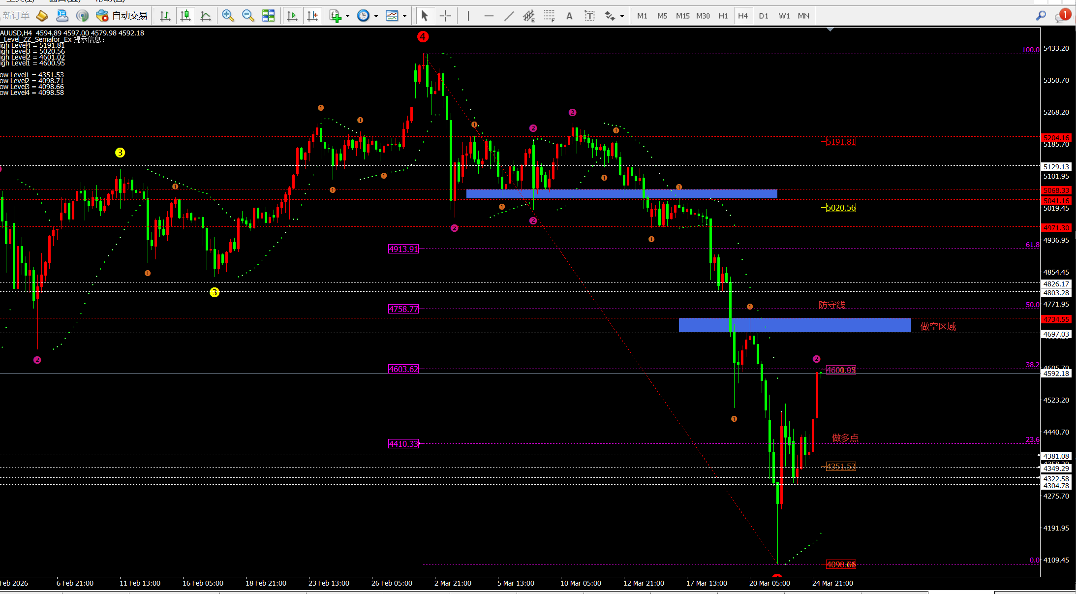 昨日我们分析了欧美盘黄金该布局多单了,而亚盘时段可以空一次;行情如预期走势亚盘价格从4370下跌至4320附近后触底反弹4440一线,之后价格维持在4440-4370之间来回震荡,收盘时段价格拉伸至4483一线并收盘4476附近。因为破位高点所以今日早间价格加速上涨4600一线。