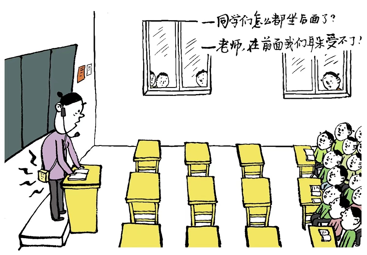 回到工具上来说,被奉为“护嗓神器”的“小蜜蜂”,潜藏着隐形的教育“公害”。一是会降低教师自身的用嗓能力。二是会损害师生的听力。医学专家指出,教室空间有限,前排学生距离声源较近,如果扩音器的音量超过85分贝,尤其是在连续使用的情况下,会造成内耳毛细胞的不可逆损伤。不少教师也反映,持续佩戴“小蜜蜂”上课,耳朵常会出现“嗡嗡”作响的不适,身边不少同事出现听力下降、“空耳”等情况。三是会扰乱校园声场。据报道,在一些学校,因使用“小蜜蜂”的教师数量众多,教学楼仿佛被捅开的蜂巢,“嗡嗡”声此起彼伏,教学楼之间的空地甚至形成“环绕声”效果,为了压过隔壁班的声音,教师们只能不断调高音量,原本有序的课堂,渐渐变成一场无序的“分贝大战”,这不仅破坏了校园的和谐,还间接影响了正常的教育教学秩序。