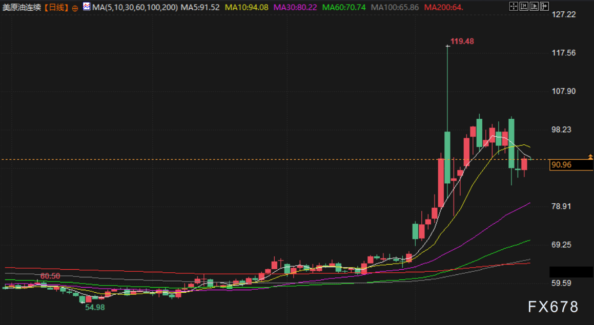 油价周三收涨超3%,美原油重回90美元/桶上方,市场正评估中东局势缓和的迹象,投资者关注伊朗方面正在审议美国提出的结束海湾战争提议,而伊朗外长表示无意就结束这场冲突举行谈判。