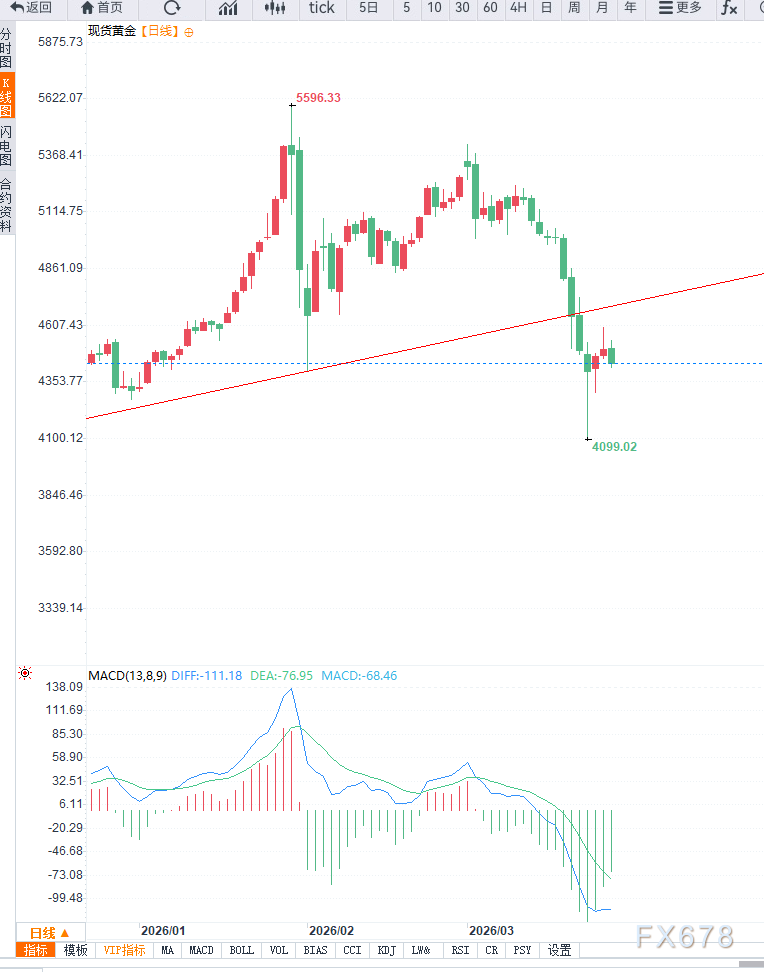 黄金当前走势的核心在于地缘风险与宏观政策预期的动态平衡。中东局势的不确定性为金价提供底部支撑,但能源价格上涨强化通胀压力,从而限制央行宽松空间,对黄金形成压制。技术结构显示市场处于震荡区间内等待突破信号。短期来看,金价仍将维持高波动震荡格局,需重点关注关键区间突破及地缘事件演变。周四黄金市场在连续反弹后出现回调,价格维持在4400美元上方震荡整理。当前市场核心驱动仍集中在中东局势的发展路径上,投资者正密切关注未来24至48小时内谈判是否取得实质性进展,这将直接影响全球风险情绪及资产定价逻辑。