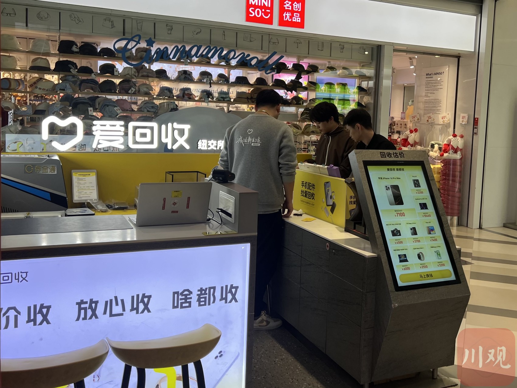 在爱回收线下店铺,市民正咨询手机回收相关内容。