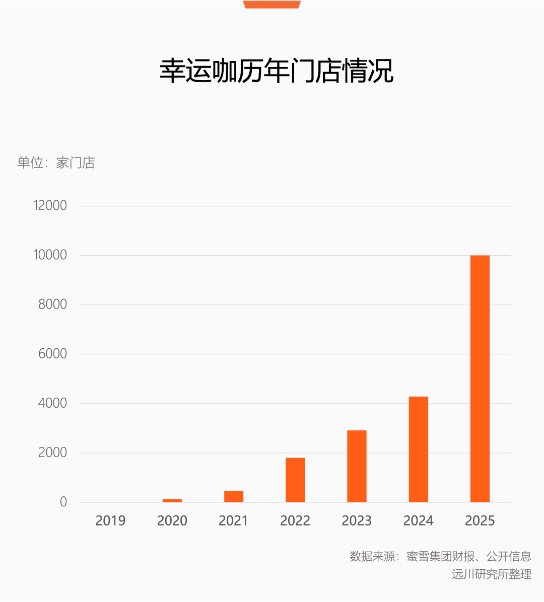 一是多元化。2025年,蜜雪旗下咖啡品牌幸运咖门店规模不声不响突破一万家,海南的咖啡豆基地同期投产。同年10月,蜜雪战略并购现打鲜啤品牌鲜啤福鹿家。进入了现磨咖啡和现打鲜啤两个新市场。