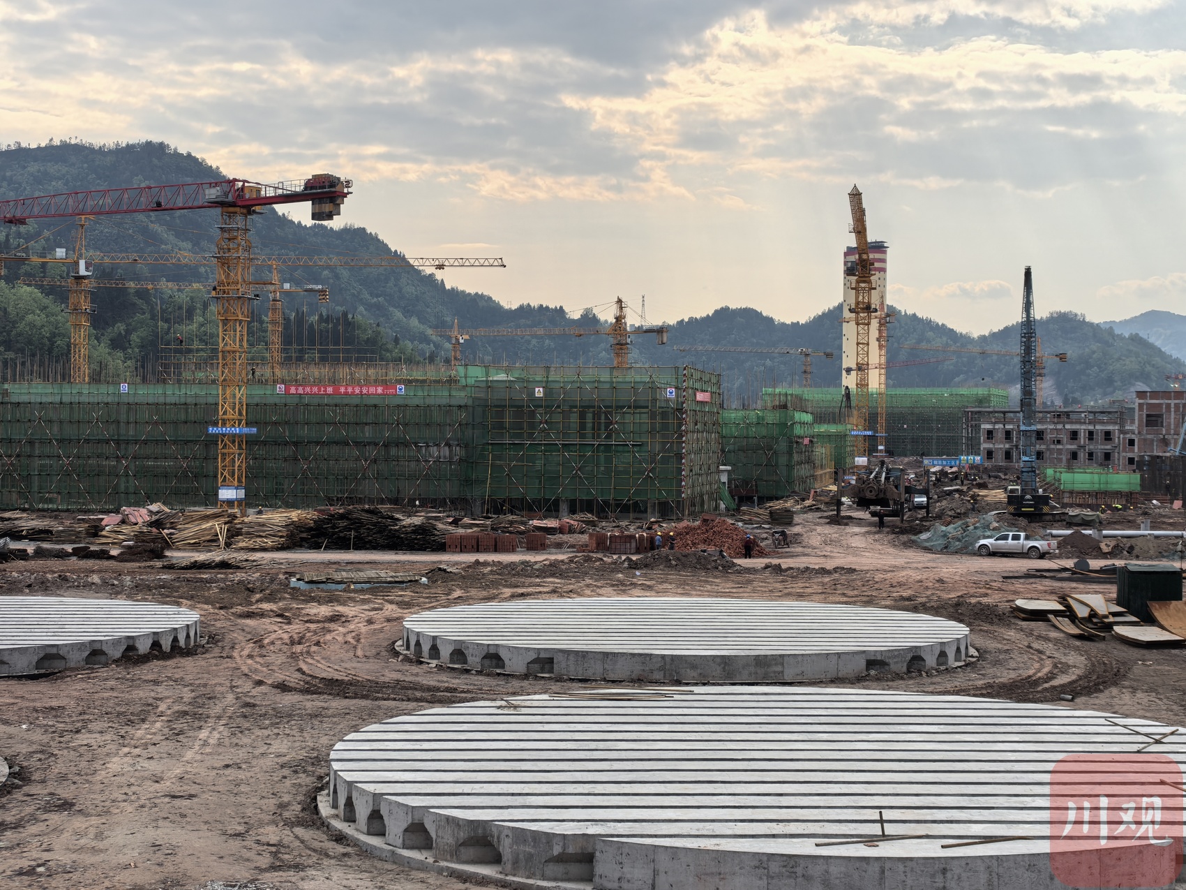 厂房建设是投入人力和机械最多的板块,包括混凝土结构厂房和钢结构厂房两类。施工方四川省亿鑫建筑工程有限公司项目经理罗山在现场做技术指导和施工组织协调工作,他说,钢筋工、泥工、焊工、砌筑工、混凝土模板工等各班组相互配合,每天下班后总结当天作业情况和安排第二天施工计划,紧盯各个时间节点按期推进。