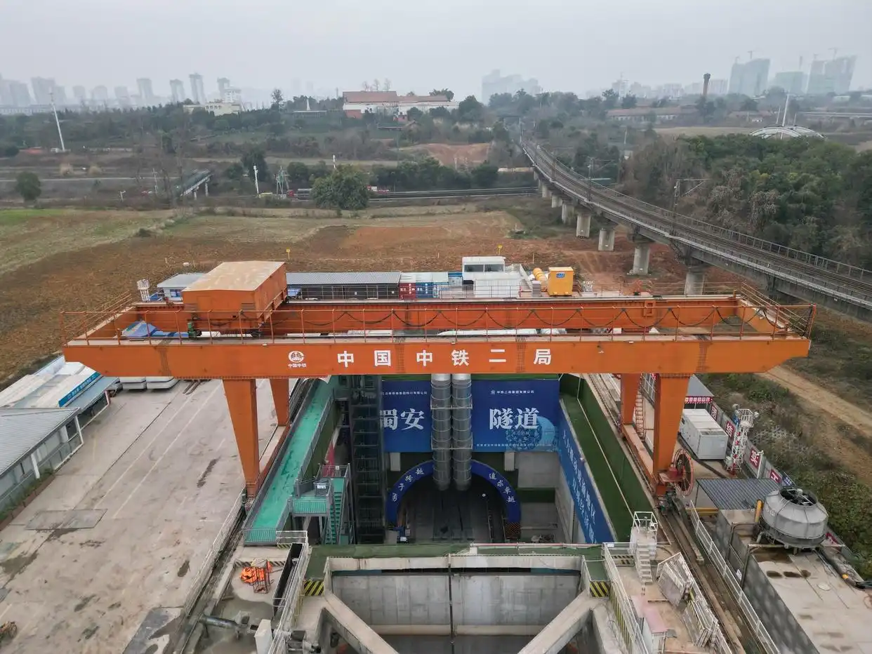 在成渝中线高铁的起点站成都,也有一条“全国之最”的隧道。它是目前国内掘进距离最长、直径最大的土压平衡盾构隧道——蜀安隧道。