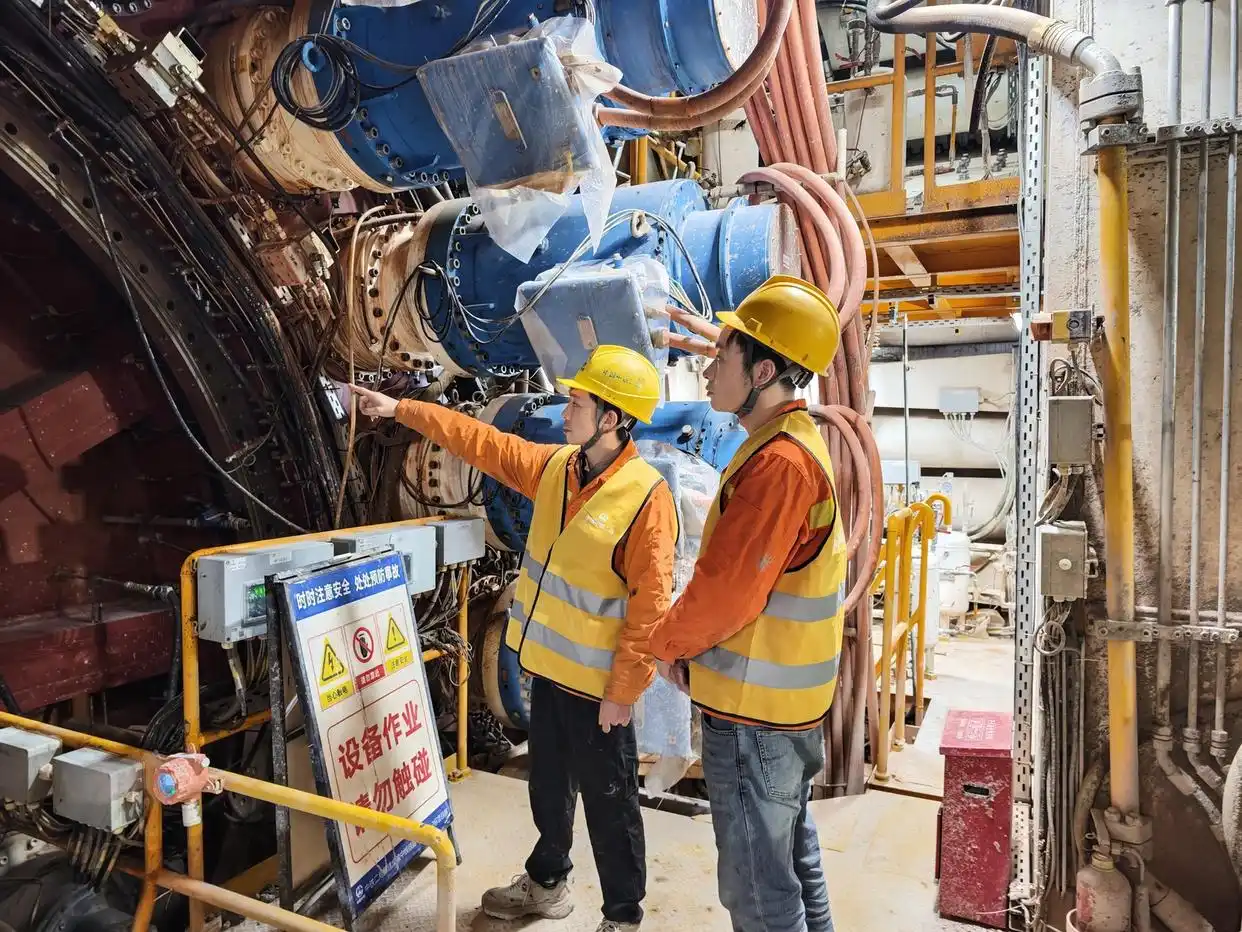 先说说盾构机,它是蜀安隧道挖掘的重要帮手,它有一张“大脸盘”,长满“铁齿钢牙”,专门“啃”硬岩、“吞”沙土。在地下40米深处,直径14米的盾构刀盘以每分钟1.5转的节奏削开岩层,管片拼装、同步注浆、渣土运输……每一个环节都井然有序。