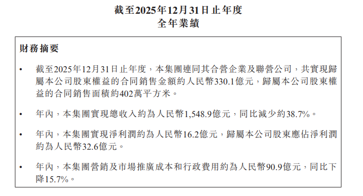 33月30日晚,碧桂园2025年年报正式出炉。经历行业深度调整后,碧桂园2025年实现营业收入1548.9亿元,全年归母净利润32.6亿元,成为率先完成系统性债务重组并实现账面盈利的民营房企之一。