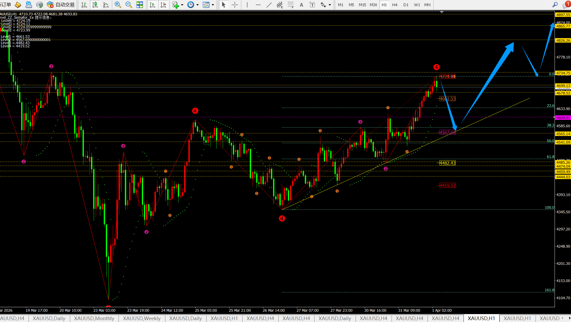 【1】4710-4720附近空,防守4750,目标看4650-4600-4580