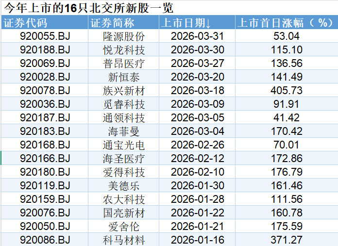 2026年第一季度,北交所总共有16只新股上市,成为当之无愧的IPO主力战场。
