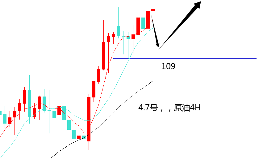 霍尔木兹海峡一天不打开原油就很难出现大跌,回踩继续干多吧,昨天我们预估的它回踩105就开始继续拉升,只是回踩到了109附近继续涨,原油今天的109已经是新的支撑平台,原油的多头稳稳的站上了100的位置,如果后面美伊谈的不理想,原油站上120也是指日可待,今天依托109继续多吧。