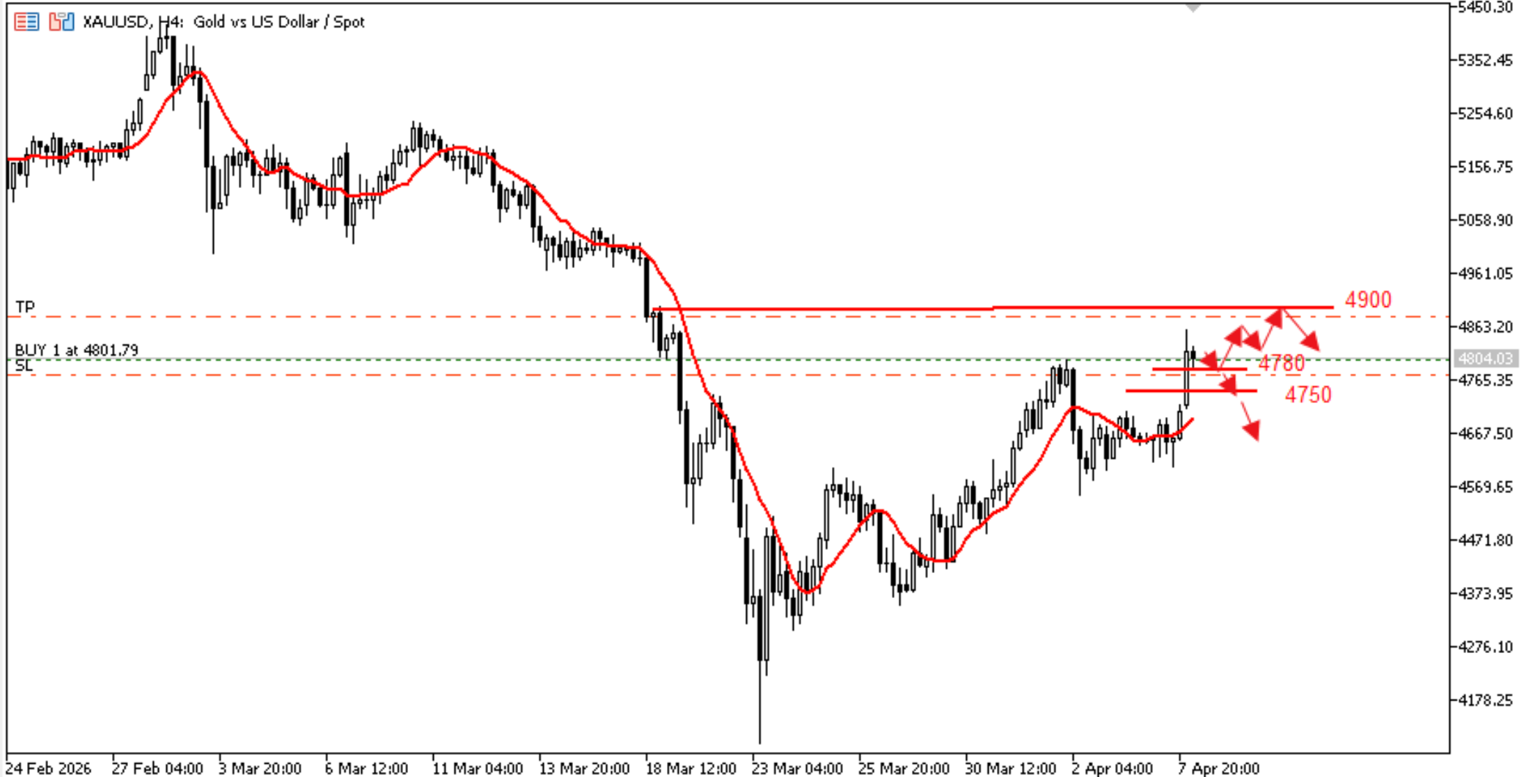 从动量角度来看,多头力量依然占主导地位,但上涨动能有所放缓。4小时图显示,金价在高位形成短期盘整形态,价格在一定范围内波动。如果价格在回调至支撑位后企稳,则可能进一步上涨;然而,跌破4750美元可能引发技术性回调。