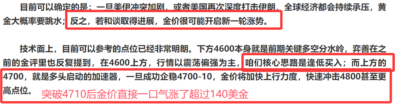 近期我们反复强调一个核心规律:美伊冲突降级→金价上涨;冲突升级→金价下跌,这已经成为近期行情的铁律,原因此前多次讲过,不再重复。