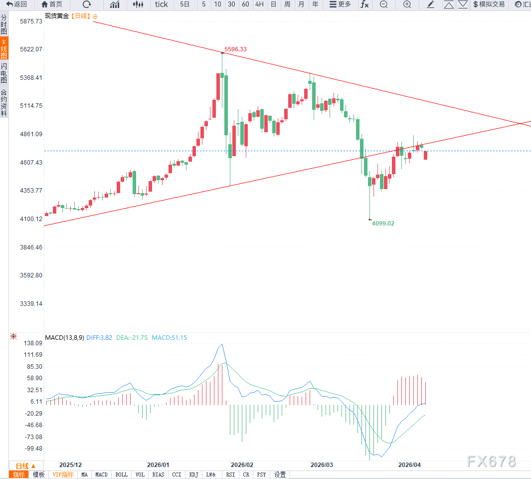 从4小时周期来看,黄金短线走势呈现震荡下行结构,跳空缺口形成后未能快速回补,表明上方抛压仍然存在。若价格跌破4600美元支撑,则可能进一步测试4500美元区域;反之,若重新站稳4750美元上方,则有望修复短期跌势并尝试回补缺口。整体来看,短期走势仍将围绕利率预期与地缘风险展开博弈。