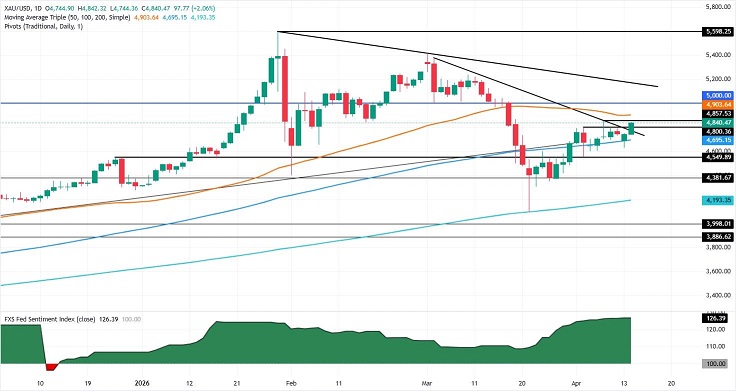 FXStreet分析师Christian Borjon Valencia写道,受伊朗谈判希望重燃拖累,美元再度承压,金价随之飙升。此外,油价下跌及市场情绪改善,也为黄金反弹提供有力支撑。