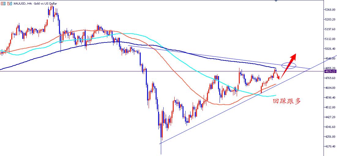 今日走势来看:金价先回踩 4800-4790 确认支撑,企稳后震荡上行,走先抑后扬行情。守住 4800 美元则多头主导,有望上攻 4900-5000 美元;若快速下探 4780 美元,仍是低多良机,深跌概率极低。当前黄金上涨逻辑稳固,早间回踩是绝佳入场点,耐心持有待拉升。