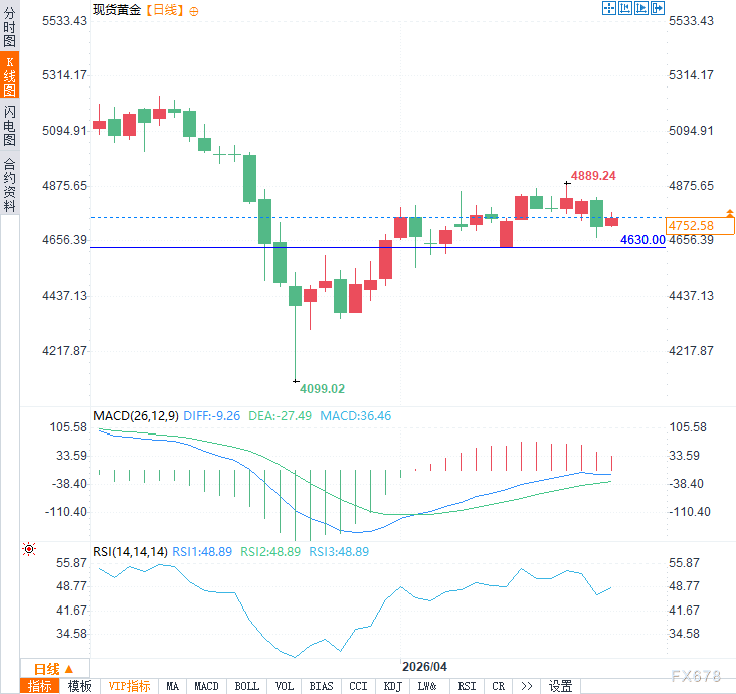 汇通财经APP讯——4月22日周三,现货黄金市场在复杂地缘信号中展开交易。美国总统特朗普宣布无限期延长与伊朗停火协议,这一举措缓解了部分军事升级担忧,但霍尔木兹海峡实际仍处于封闭状态,且两艘船只接连遭遇袭击,显示海上控制权争夺并未停歇。在此背景下,现货黄金价格上涨0.7%,报每盎司4752.58美元;6月黄金期货合约上涨1.2%,至4774.60美元。而原油价格徘徊在每桶100美元附近,能源供给中断风险依然突出。