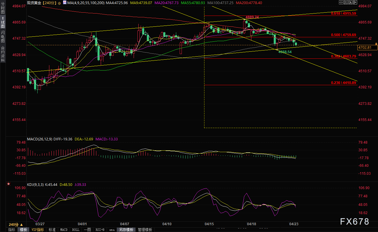 北京时间13:42,现货黄金现报4704.92美元/盎司。汇通财经APP讯——近期,国际黄金市场走势承压。现货黄金价格(XAU/USD)在每盎司4700美元附近反复拉锯,未能有效延续前一个交易日的微弱涨幅。周四(4月23日)亚洲交易时段,市场再度出现新的卖盘,令金价上行尝试屡屡受挫。与此同时,美元指数连续第三个交易日获得上涨动能,表现出明显的强势特征。推动美元走强的核心因素来自两个方面:一是地缘政治领域美国与伊朗之间的摩擦迹象持续存在,二是市场对美联储未来降息节奏的预期因通胀压力而重新调整。这两股力量共同为美元提供了支撑,并对不具备利息收益的黄金构成了显著压力。