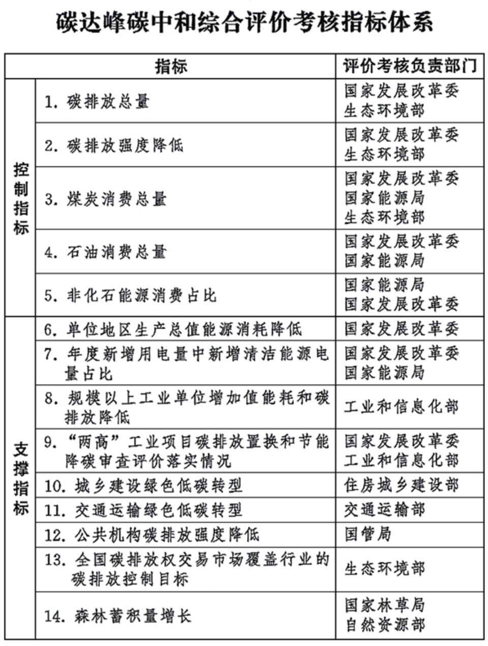 支撑指标包括节能、工业、城乡建设、交通运输、公共机构、碳排放权交易等领域具有代表性且对碳达峰碳中和具有支撑作用的指标。
